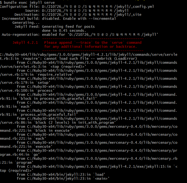 bundle exec jekyll serve 실행 시
