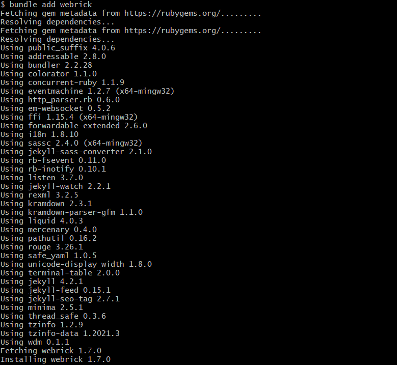 [github] Jekyll 서비스 실행 오류 cannot load such file -- webrick (LoadError)
