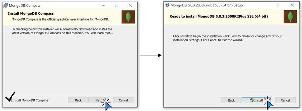 2.5 MongoDB Compass 설치 여부를 묻는데 체크해주시고 진행해주세요!