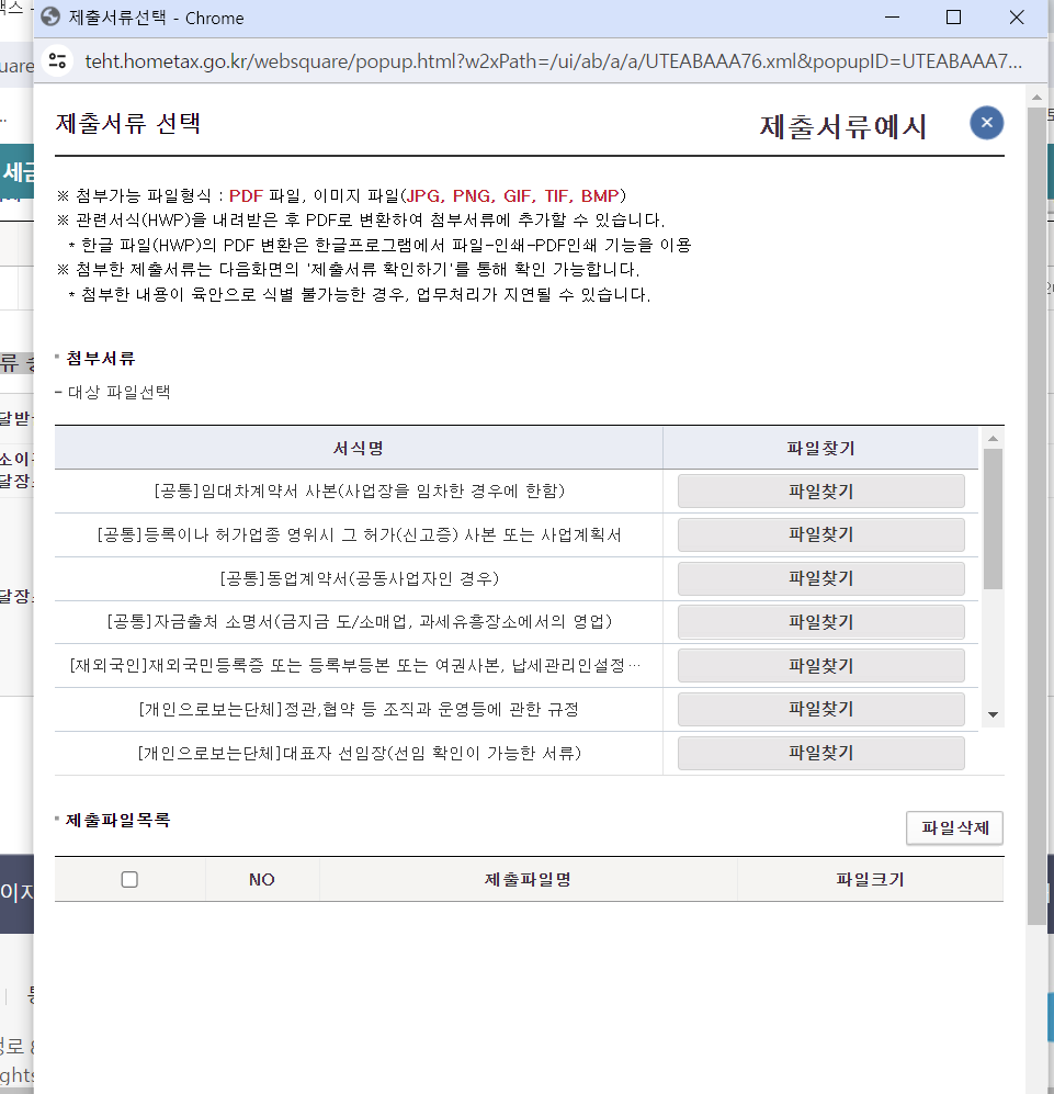 저장후완료 버튼 누른 후 위와 같은 제출 서류 창이 뜹니다.