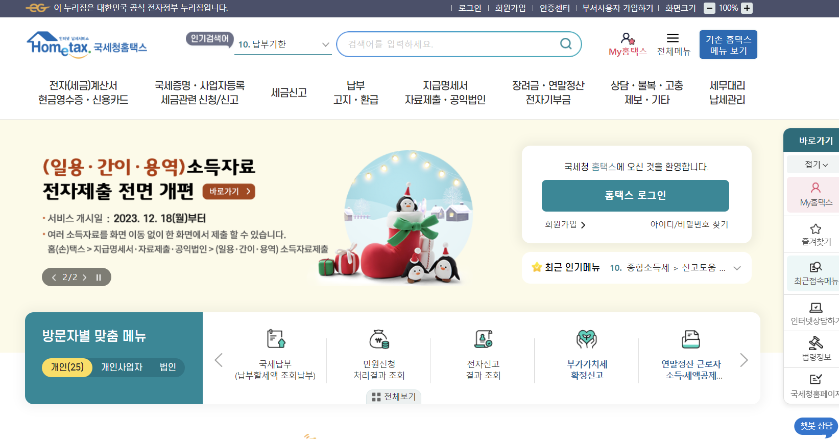 1-1. 홈택스에 접속한 후 금융·인증서(공인인증서) 로그인을 진행합니다.