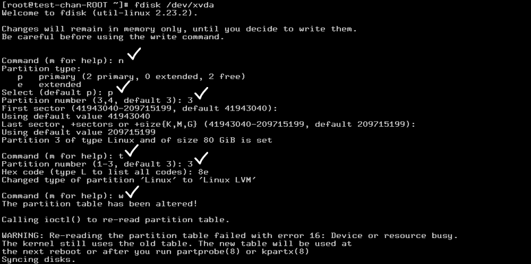 - 남은 디스크 용량을 사용하기 위해 fdisk를 통해 새로운 파티션을 생성합니다.