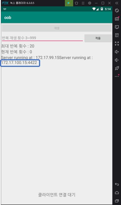 에뮬레이터 (녹스) 위에 테스트 앱을 동작시키고, 4422번 포트를 열고 외부 서버(상위 네트워크 망)에서 접속이 되도록 할께요~!