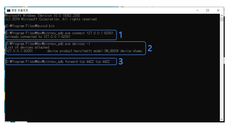CMD 창을 여시고 녹스가 설치 된 bin 경로에서 위과 같은 3개의 명령어를 순서대로 처리해주세요!
